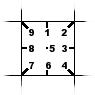 A fairly space-saving method for remembering possible positions for a number is the clockwise stroke method. This involves making a clockwise mark for possible numbers in the corresponding fields on the outside. For the 5, you make a dot in the middle. If it turns out in the further course of the solution that you can exclude another number, you can simply cross out the mark again.